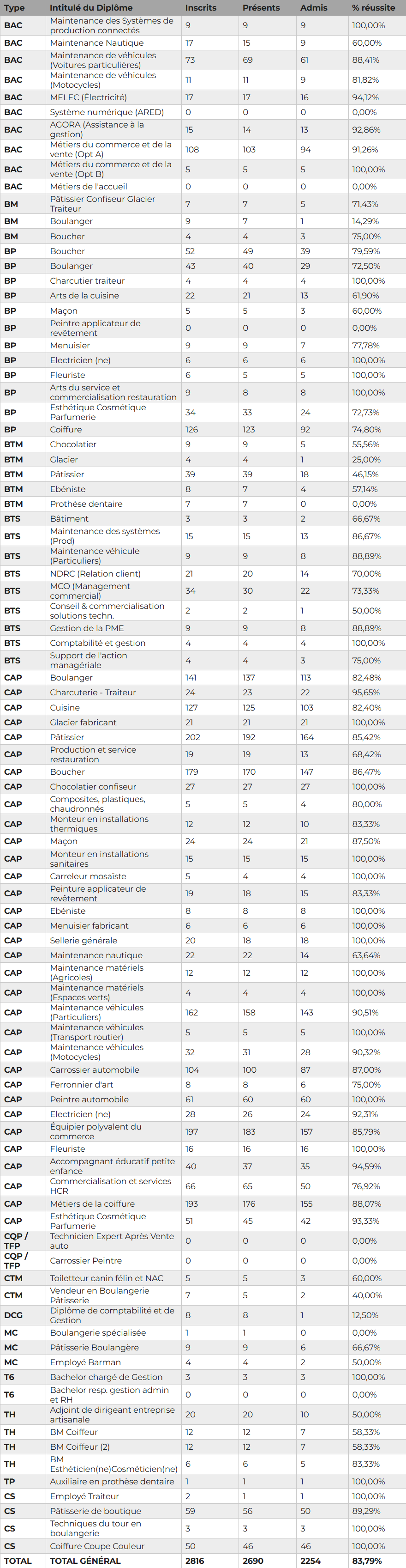 Inscrits : 2816 / Présents : 2690 / Admis : 2254